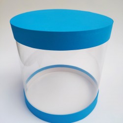 Коробка "Тубус" синяя для муссовых тортов.Изготовлена из твердого переплетного картона и пластика.Размер:диаметр - 25 смвысота - 16.5 см..